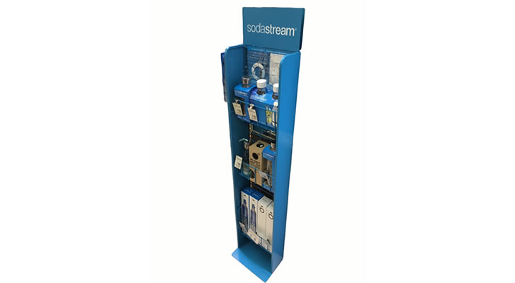 スチール什器は汎用的なものと独自的なものに分類され、汎用的な物(例:ゴンドラ什器など)は店舗の設備としての役割が多く、独自的なもの(専用什器)は販促物として売り場の確保やブランドの世界観の訴求に使用されます。スチール什器は素材に耐久性があり、長期間の使用や重量展示物に適しており、仕上がりに高級感を持たすことができます。今日のスチール什器はスチール素材に限らず、樹脂、紙、木、布、非鉄金属などが総合的に組み合わされてデザインされています。そのため、ブランドの世界観を表現しやすく、差別化が図りやすくなるので、コーナー什器として多く使用されます。