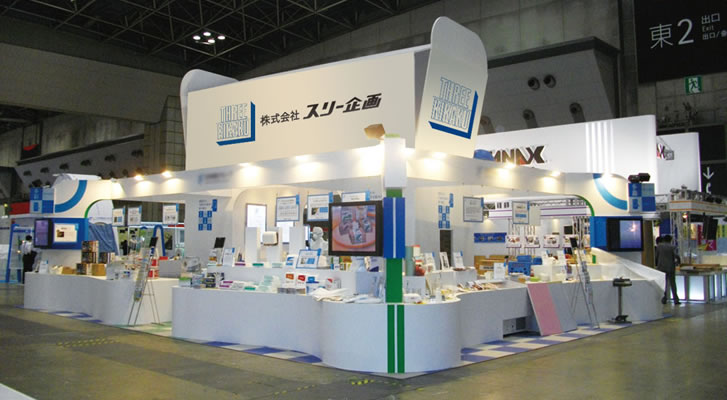 「来場者がつい入ってみたくなる」、そんな個性的な展示会ブースのデザイン・施工は是非ともスリー企画にお任せください!